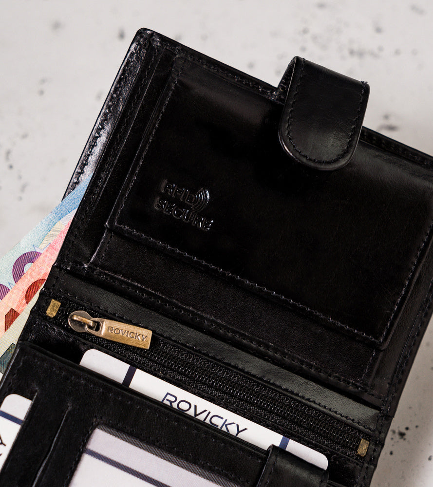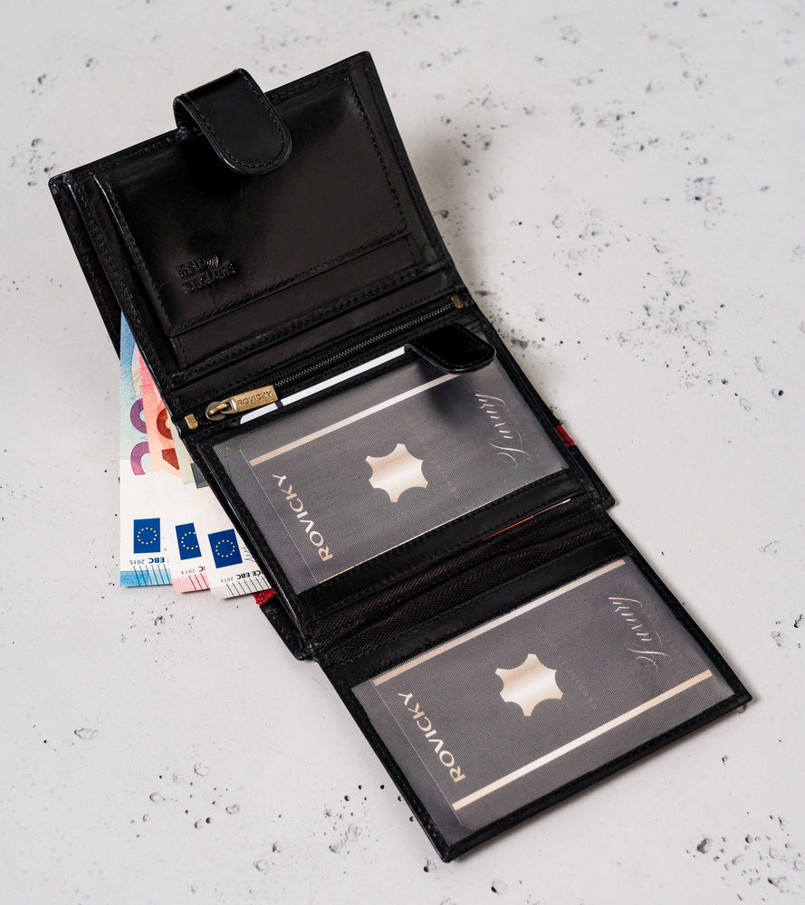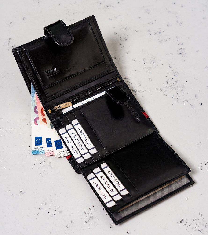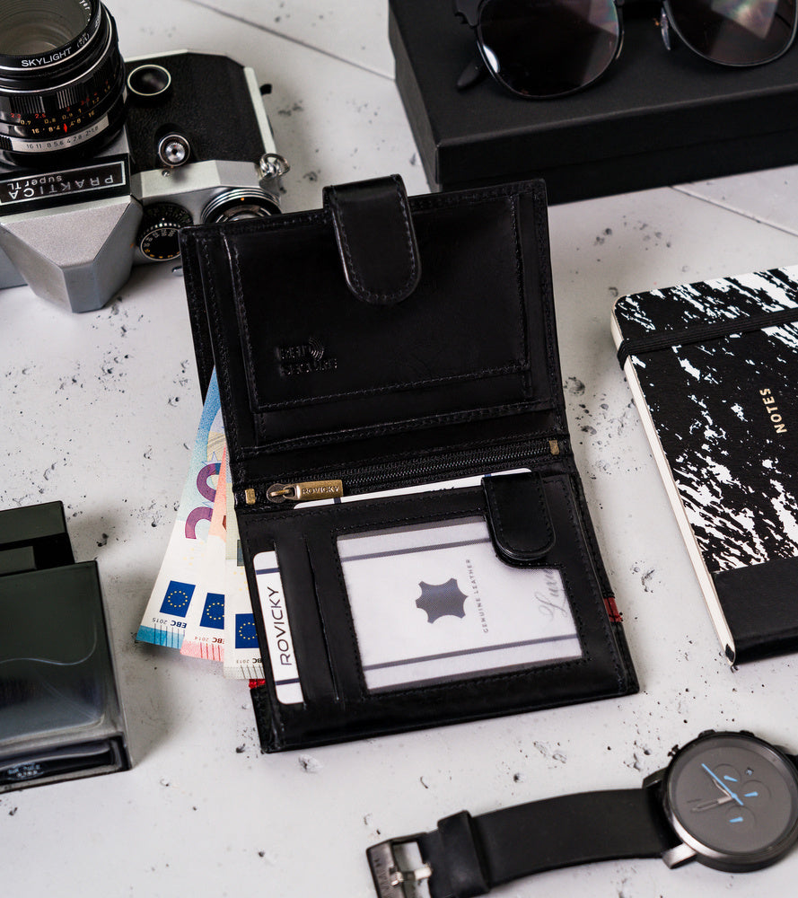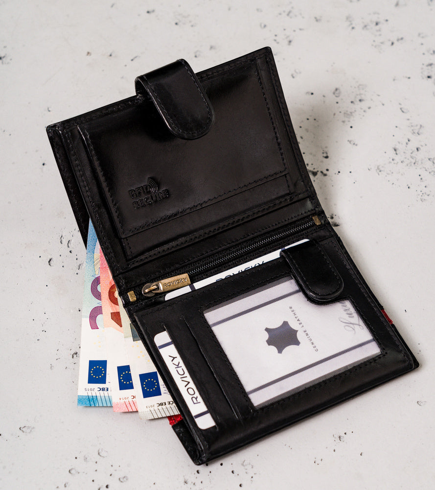 Ši elegantiška vyriška piniginė iš Rovicky yra pagaminta iš aukštos kokybės natūralios odos, užtikrinančios ilgaamžiškumą ir stilingą išvaizdą.