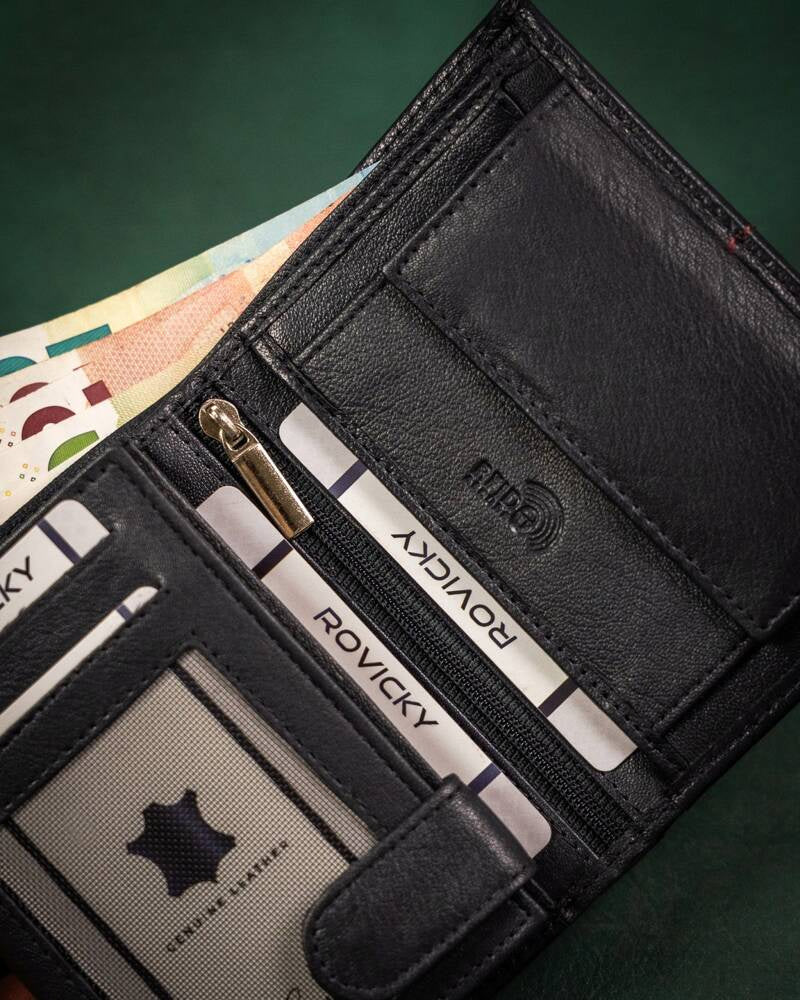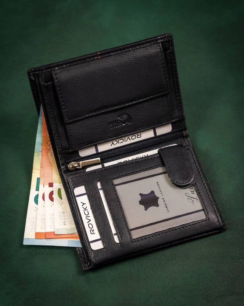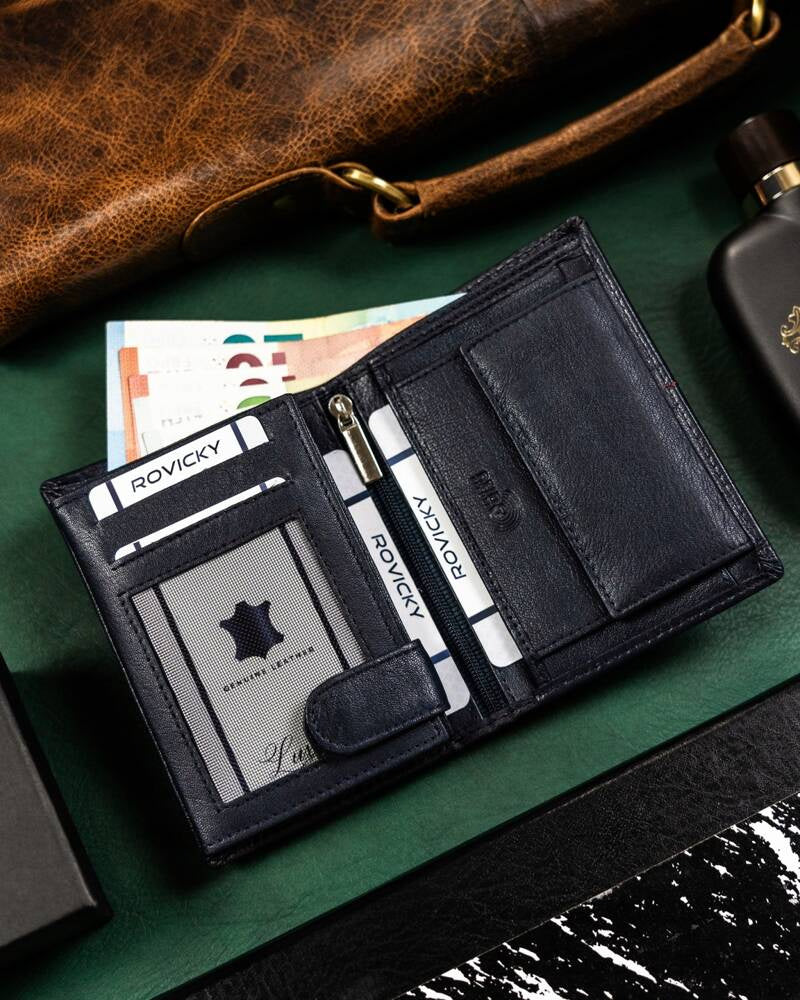 Ši elegantiška vyriška piniginė iš Rovicky yra pagaminta iš aukštos kokybės natūralios odos, kuri užtikrina ilgaamžiškumą ir stilingą išvaizdą. Tamsiai mėlyna spalva suteikia piniginei išskirtinumo ir universalumo, puikiai derančio prie įvairių aprangos stilių.