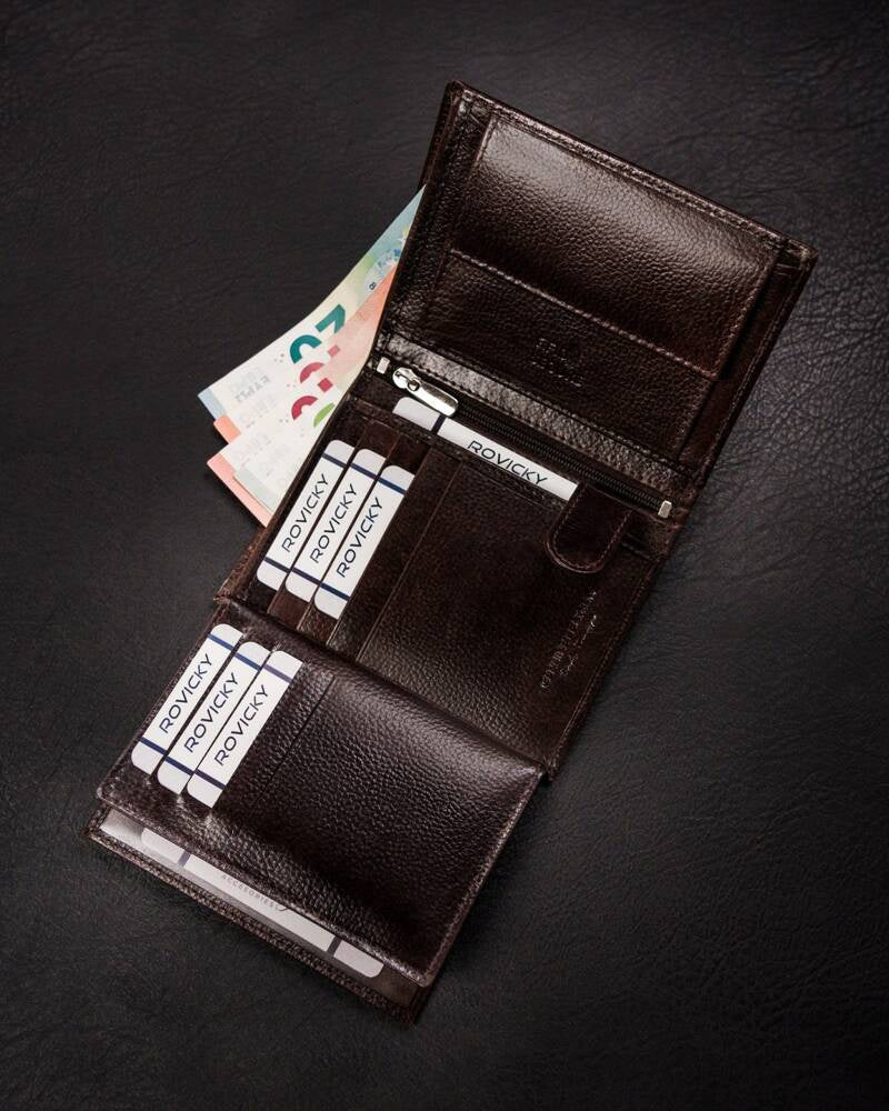 Ši vyriška piniginė iš Rovicky yra puikus pasirinkimas tiems, kurie vertina kokybę ir stilių. Pagaminta iš natūralios odos, ši piniginė pasižymi ilgaamžiškumu ir elegancija.