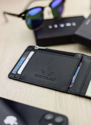 - Išorinis Kortelių Skyrius: Greitai pasiekiamas kortelių skyrius, nereikalaujantis atidaryti visos piniginės.
