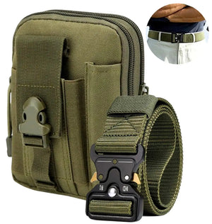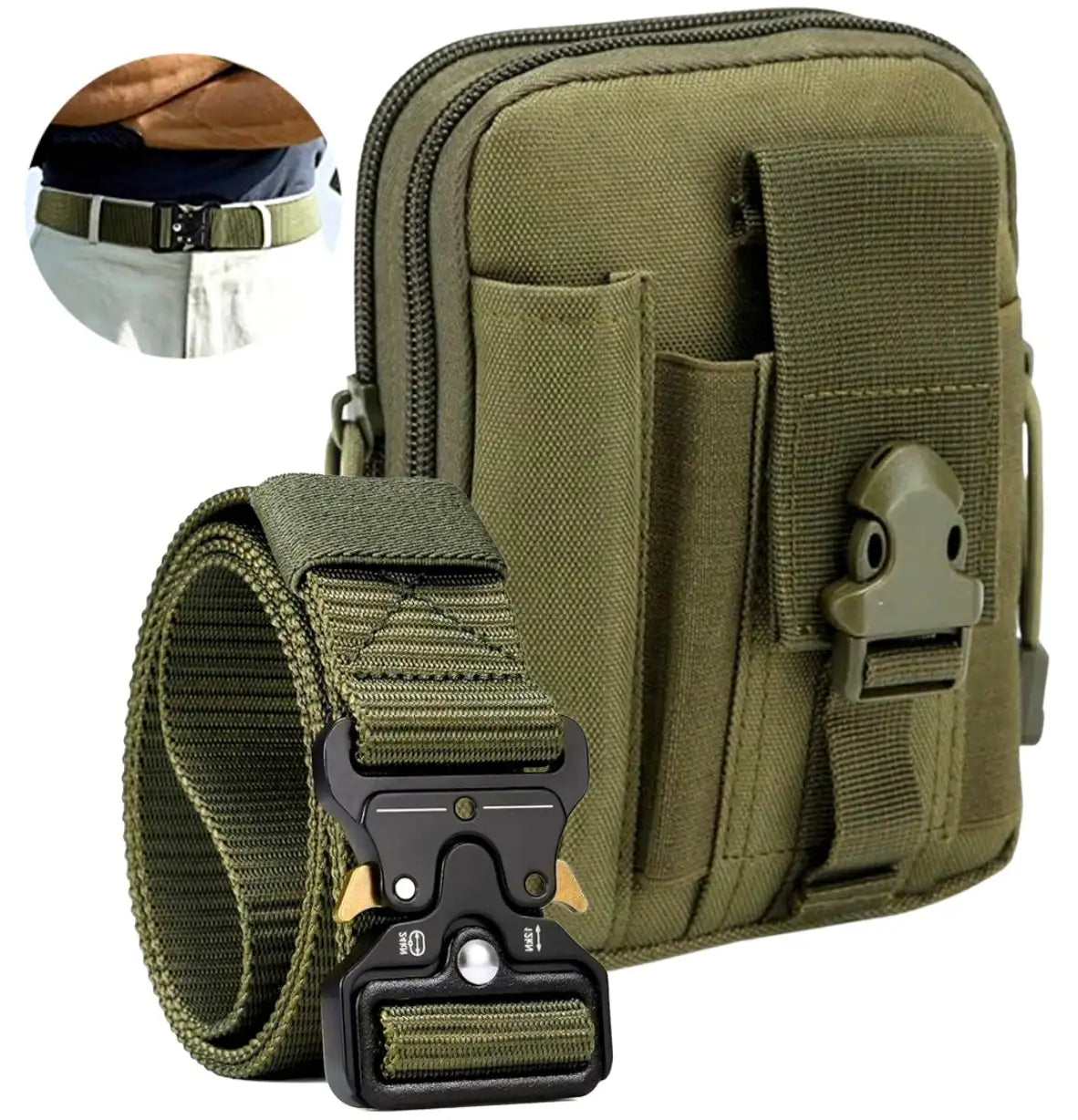Vyriškas karinis taktinis krepšys prie diržo + diržas S30 žalias