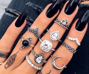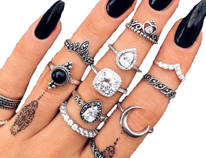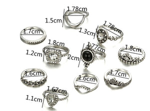 Šis žiedų rinkinys su cirkoniais yra puikus pasirinkimas, jei ieškote madingų papuošalų už patrauklią kainą. Senovinio sidabro stiliaus žiedai dekoruoti įvairių dydžių sintetiniais, permatomais cirkoniais, kurie suteikia gaminiui išskirtinę vizualinę vertę.