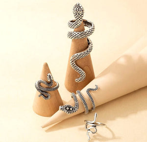 Šis žiedų rinkinys yra puikus pasirinkimas moterims, mėgstančioms papuošalus su gyvūnų motyvais. Rinkinį sudaro subtilus žiedas su gyvatės motyvu ir didelis žiedas, kuris gali papuošti visą viduriniojo piršto paviršių. Šie žiedai ne tik išsiskiria savo dizainu, bet ir suteikia unikalumo jūsų stiliui.