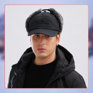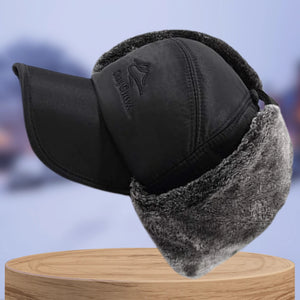 Žieminė kepurė su snapeliu ir ausinėmis, juoda