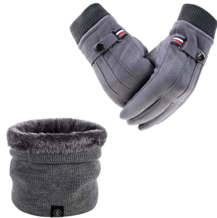 Žieminės pirštinės ir šilta kaklo mova vyrams, pilka