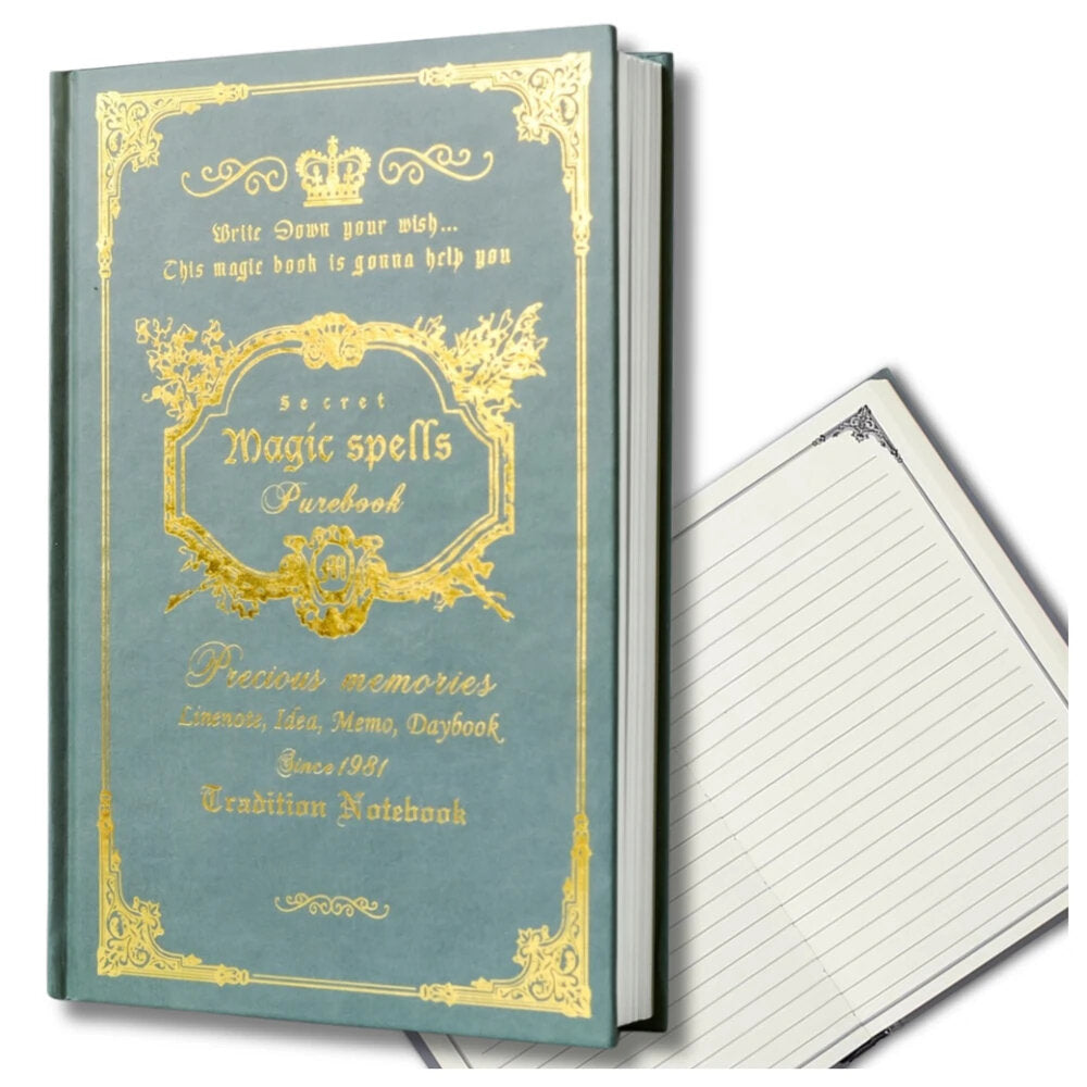 - **Spalva ir unikalios savybės**: Žalia spalva, tvirta kietoji viršelė su auksiniais įspaudais ir stilizuotais ornamentais. Vidiniai puslapiai su subtiliais kampų puošmenimis ir žemėlapiais.