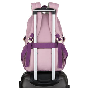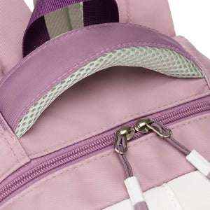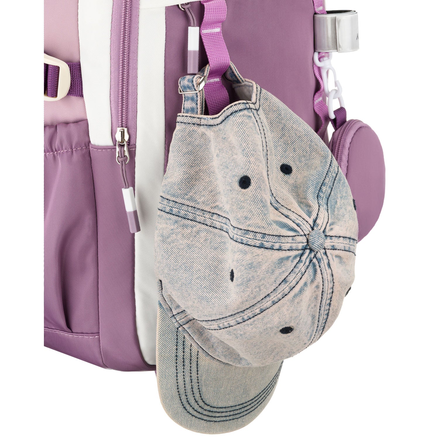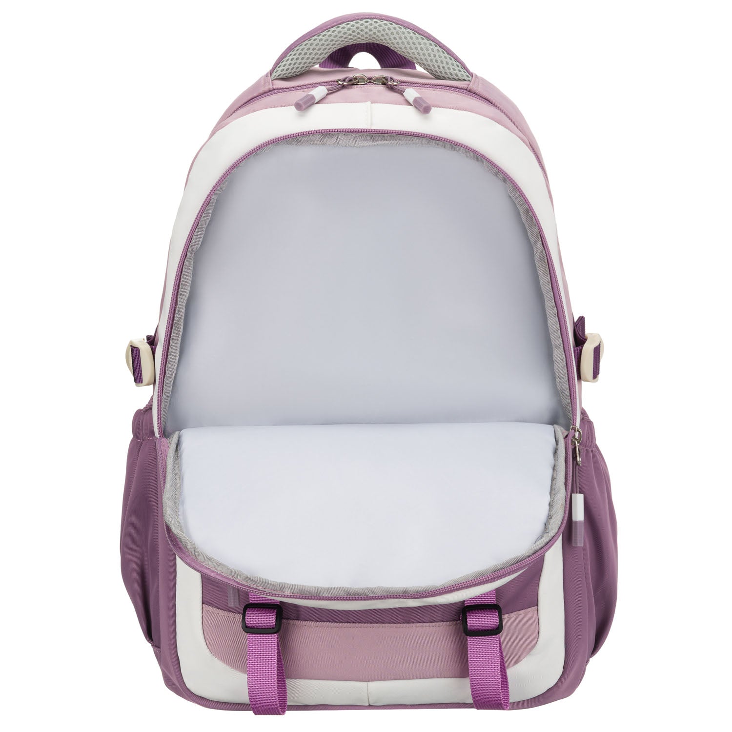 Peterson didelė balta ir violetinė poliesterio kuprinė su dviem skyriais, idealiai tinkanti kasdieniam naudojimui.