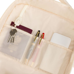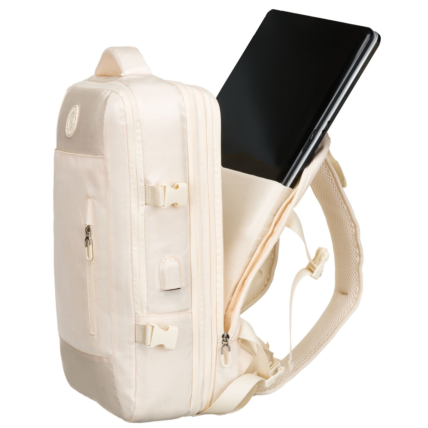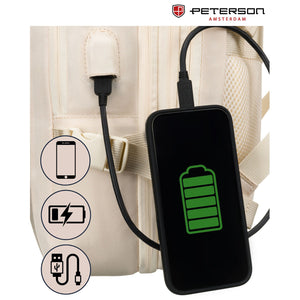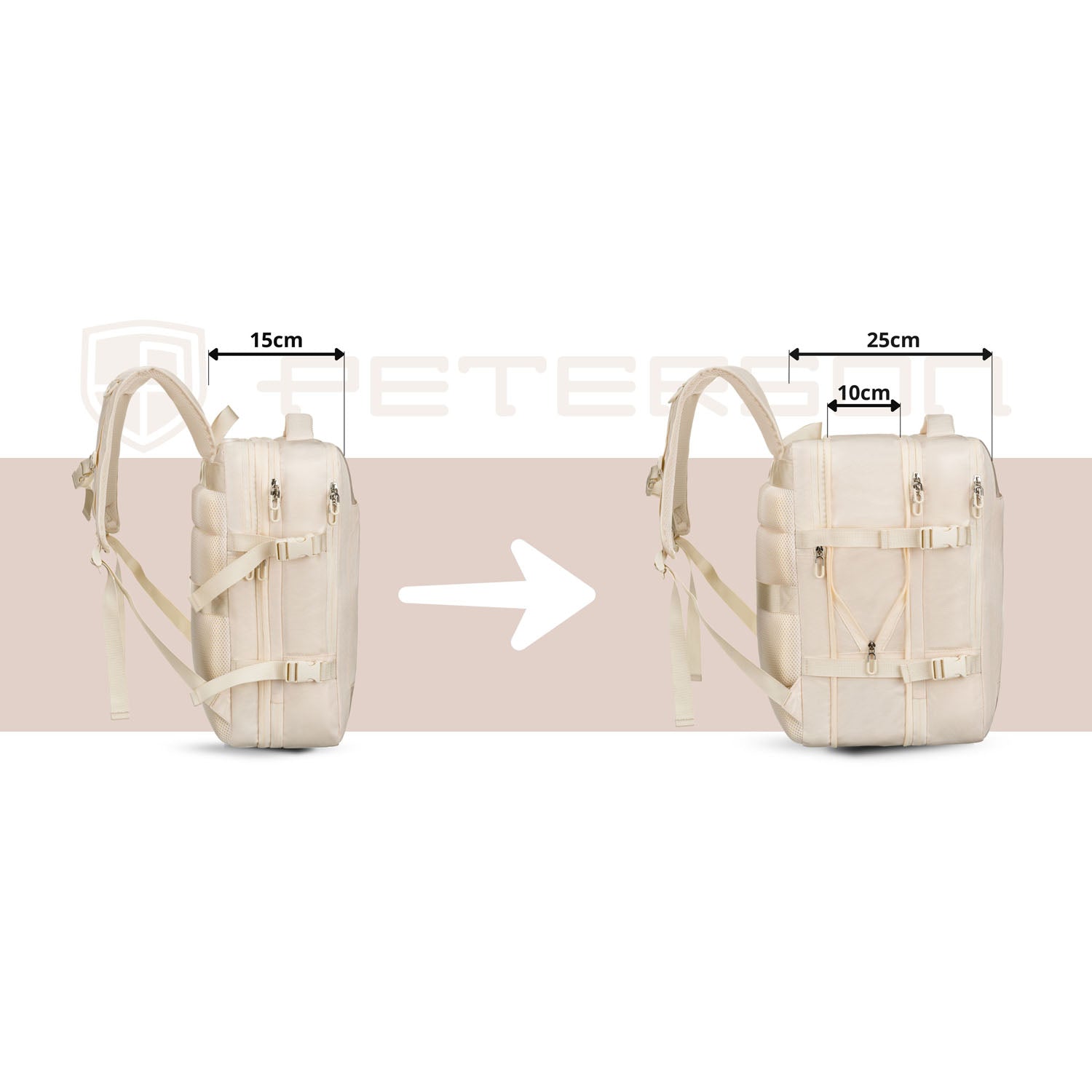 Peterson ecru spalvos didelė kuprinė su skyriais, puikiai tinkanti kasdieniam naudojimui.