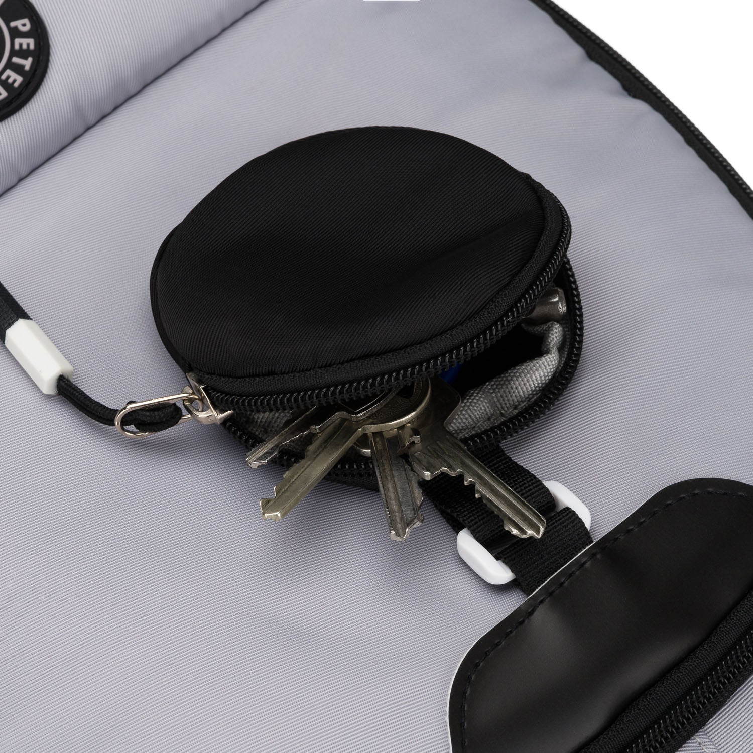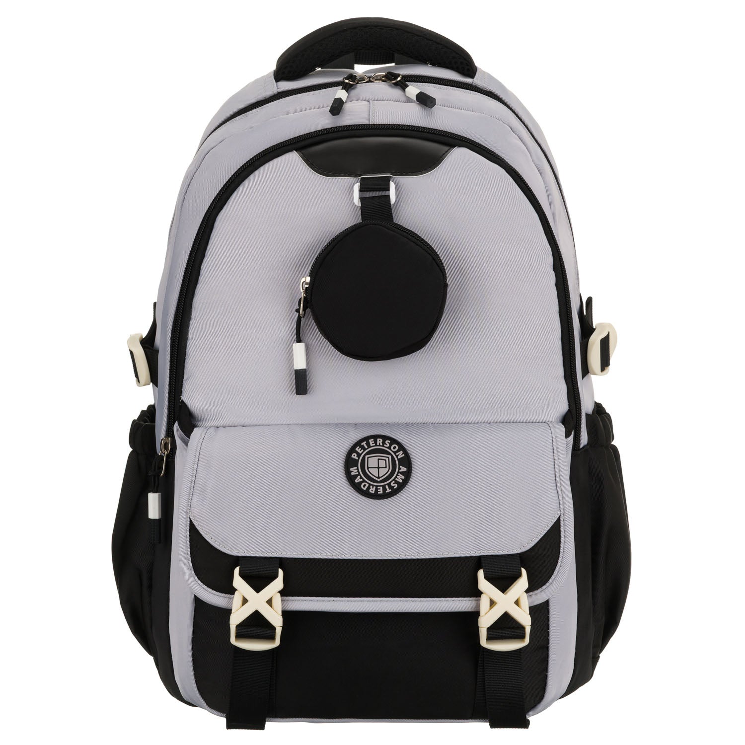 Peterson juoda ir pilka poliesterinė kuprinė – puikus pasirinkimas kasdieniam naudojimui.