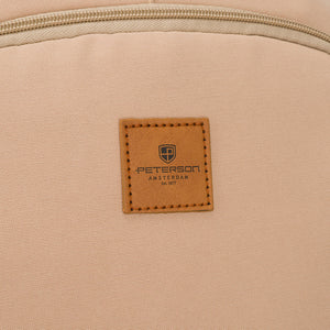 Peterson didelė smėlio spalvos poliesterinė kuprinė su dviem skyriais ir šešiomis kišenėmis, puikiai tinka kasdieniam naudojimui.