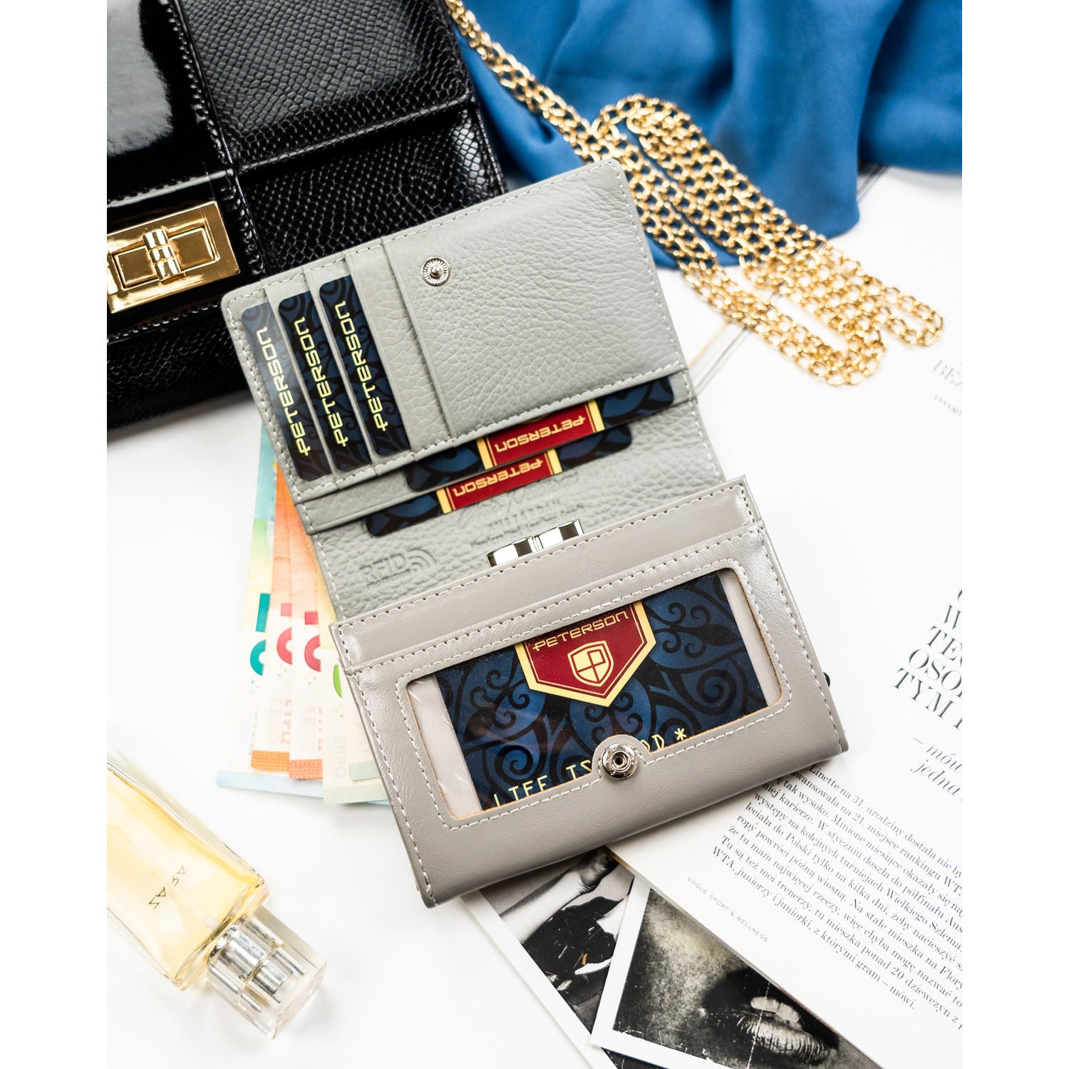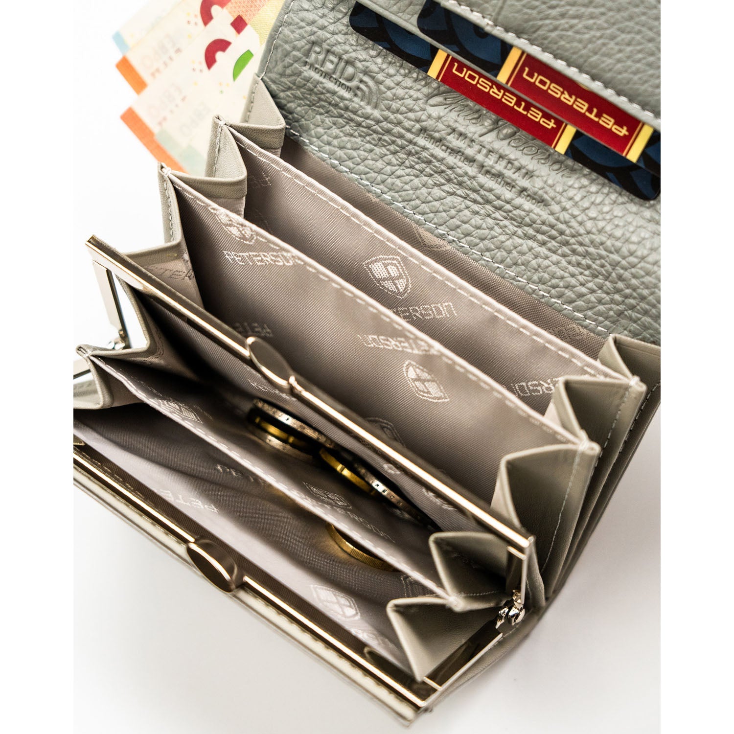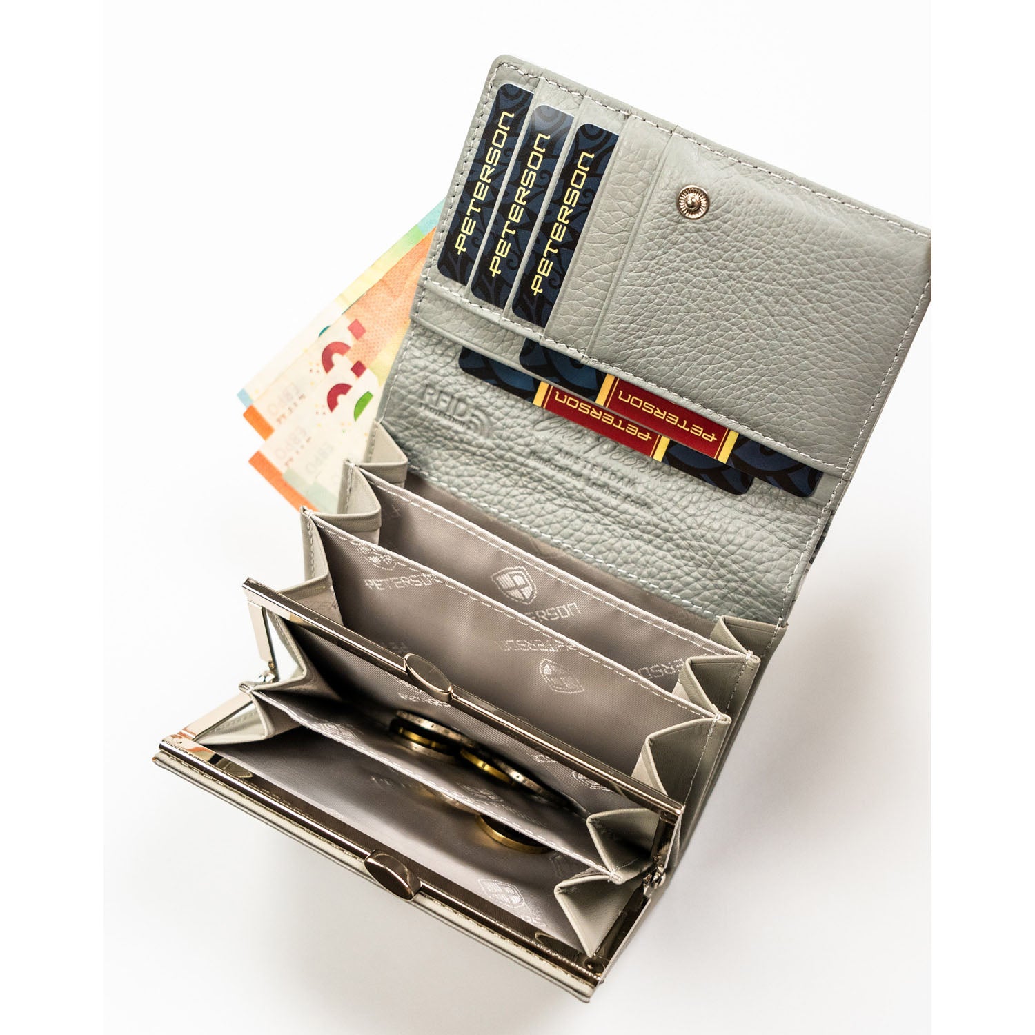 Peterson moteriška piniginė iš dirbtinės odos, baltos spalvos, su RFID apsauga.