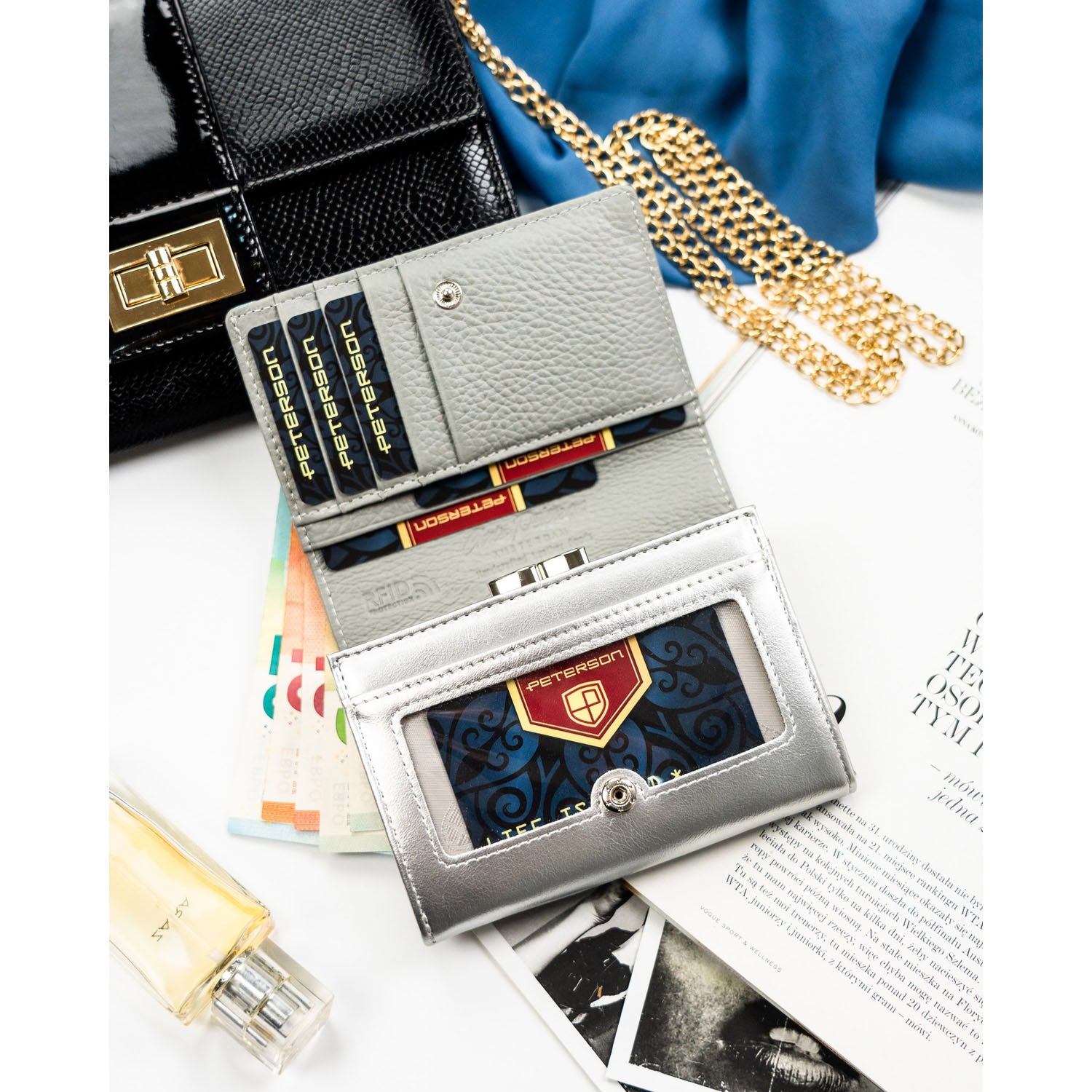 Peterson moteriška piniginė iš dirbtinės odos, mėlynos spalvos, su RFID apsauga.