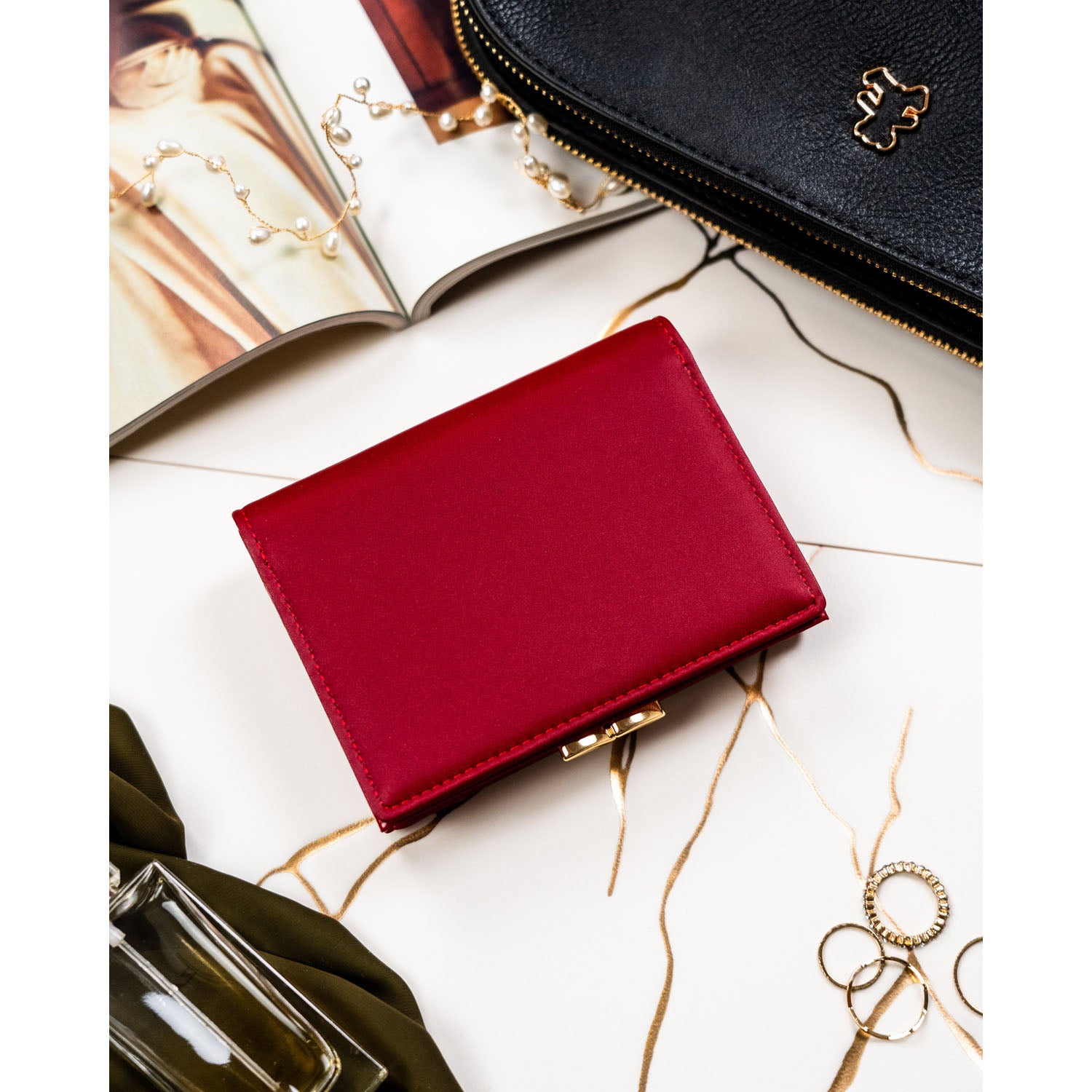 Raudonas Peterson moteriškas portfelis iš dirbtinės odos su RFID apsauga.