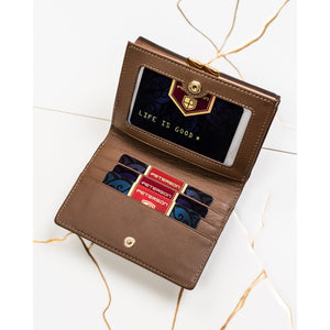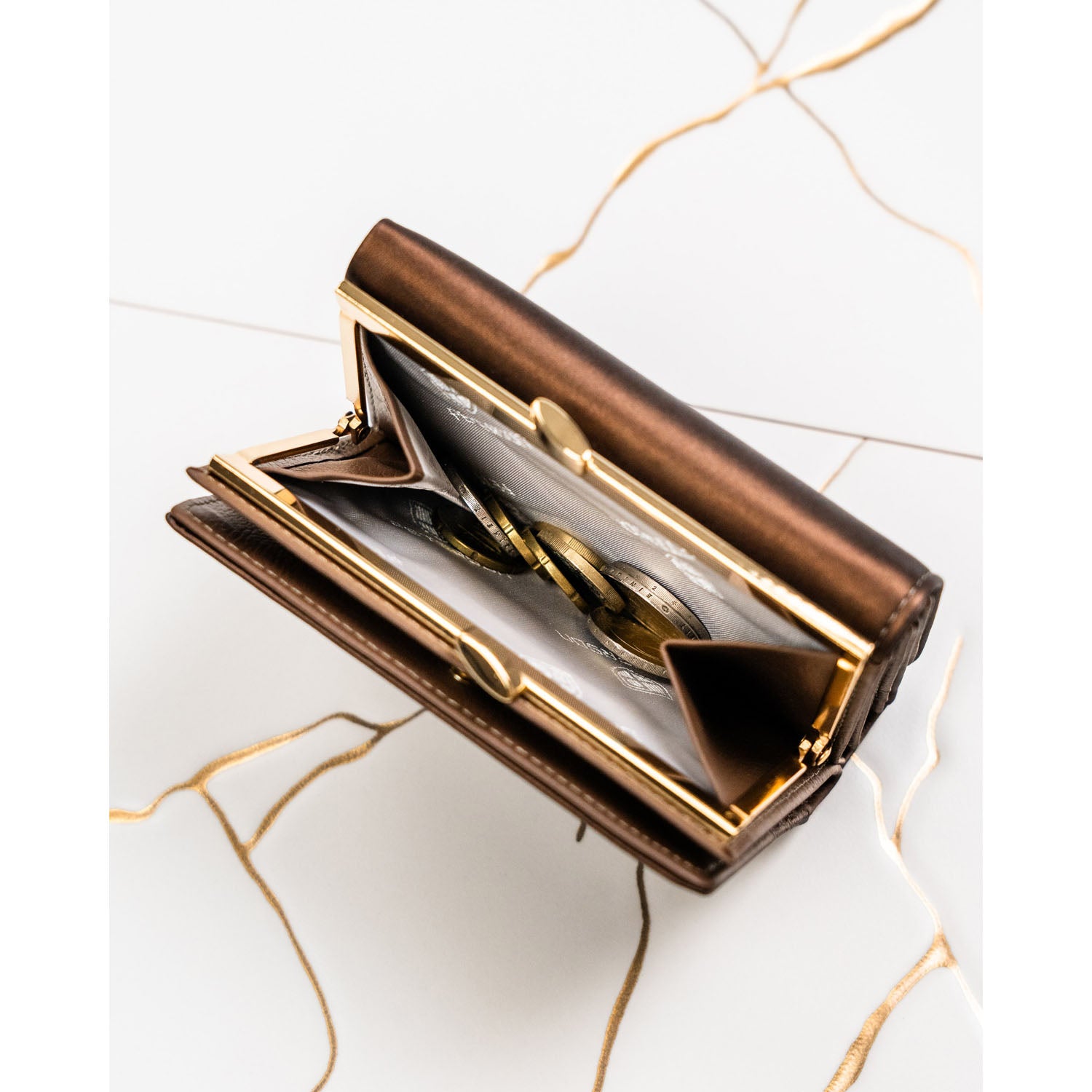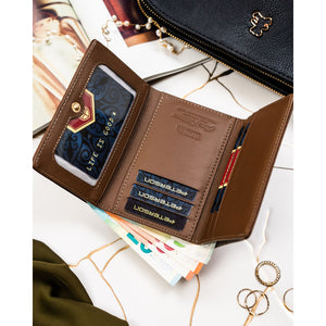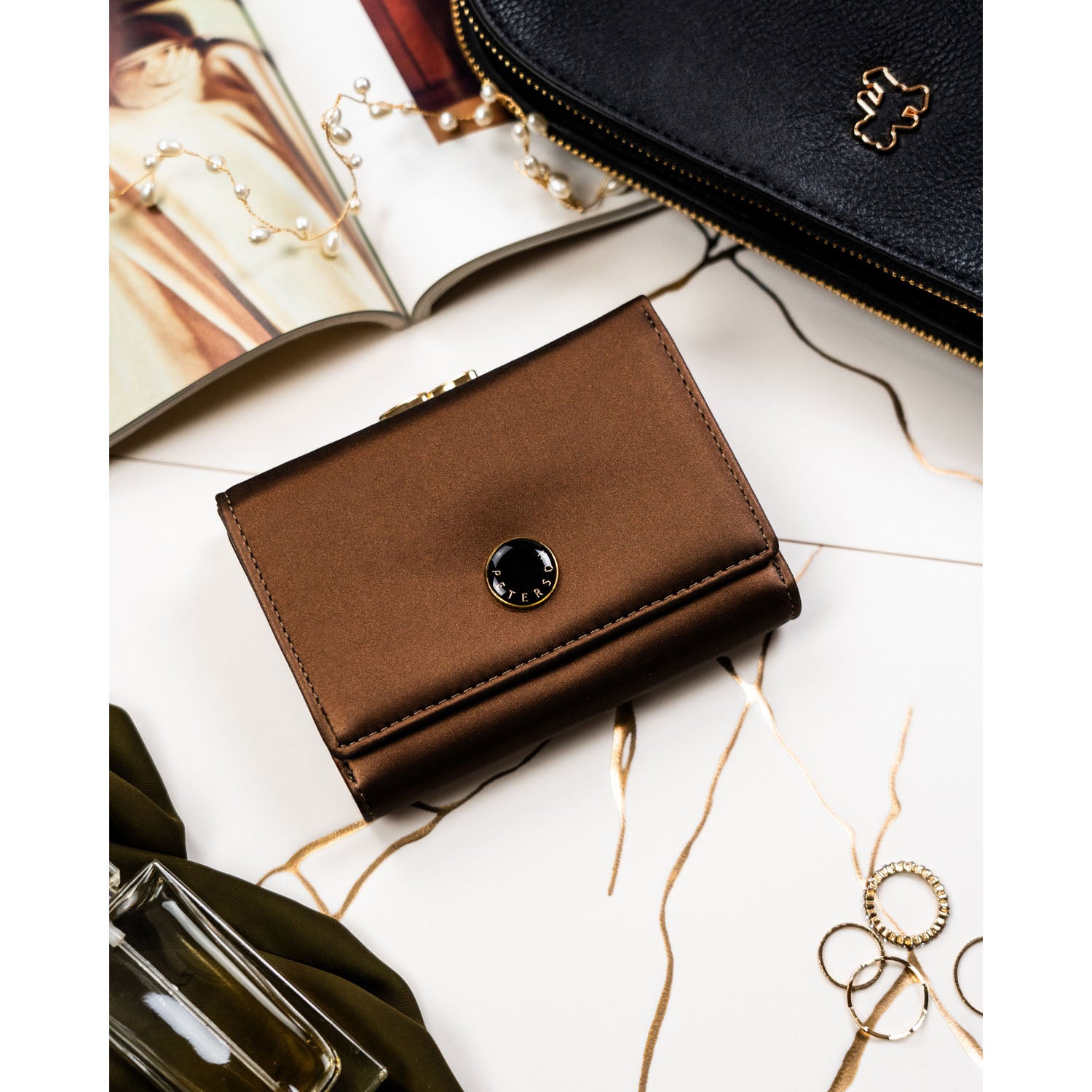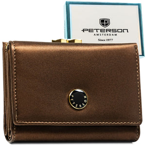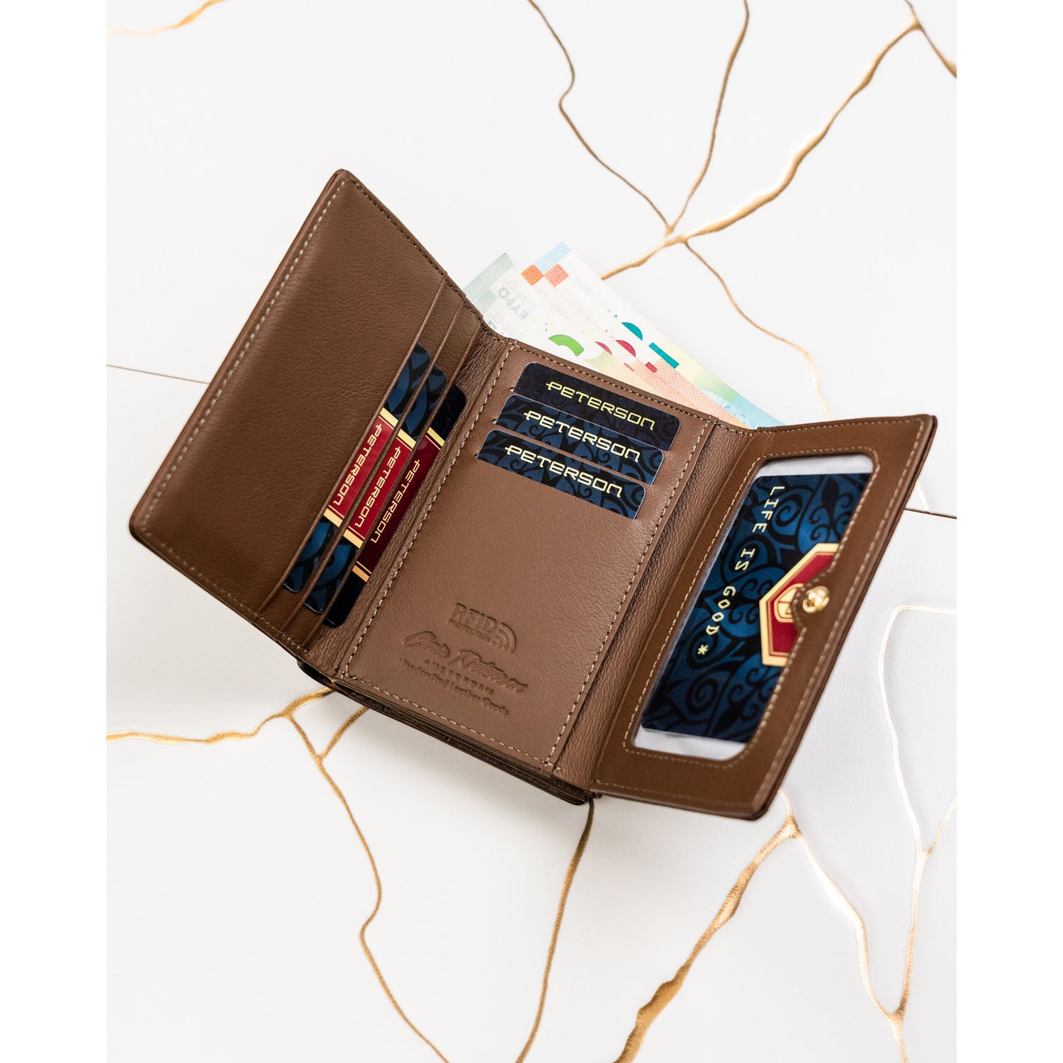 Peterson moteriška piniginė iš dirbtinės odos, rudos spalvos, su RFID apsauga.