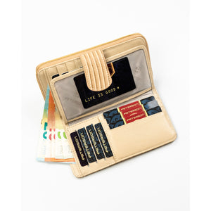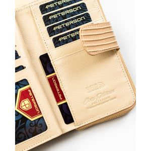 Peterson moteriška piniginė iš dirbtinės odos, smėlio spalvos, su RFID apsauga.