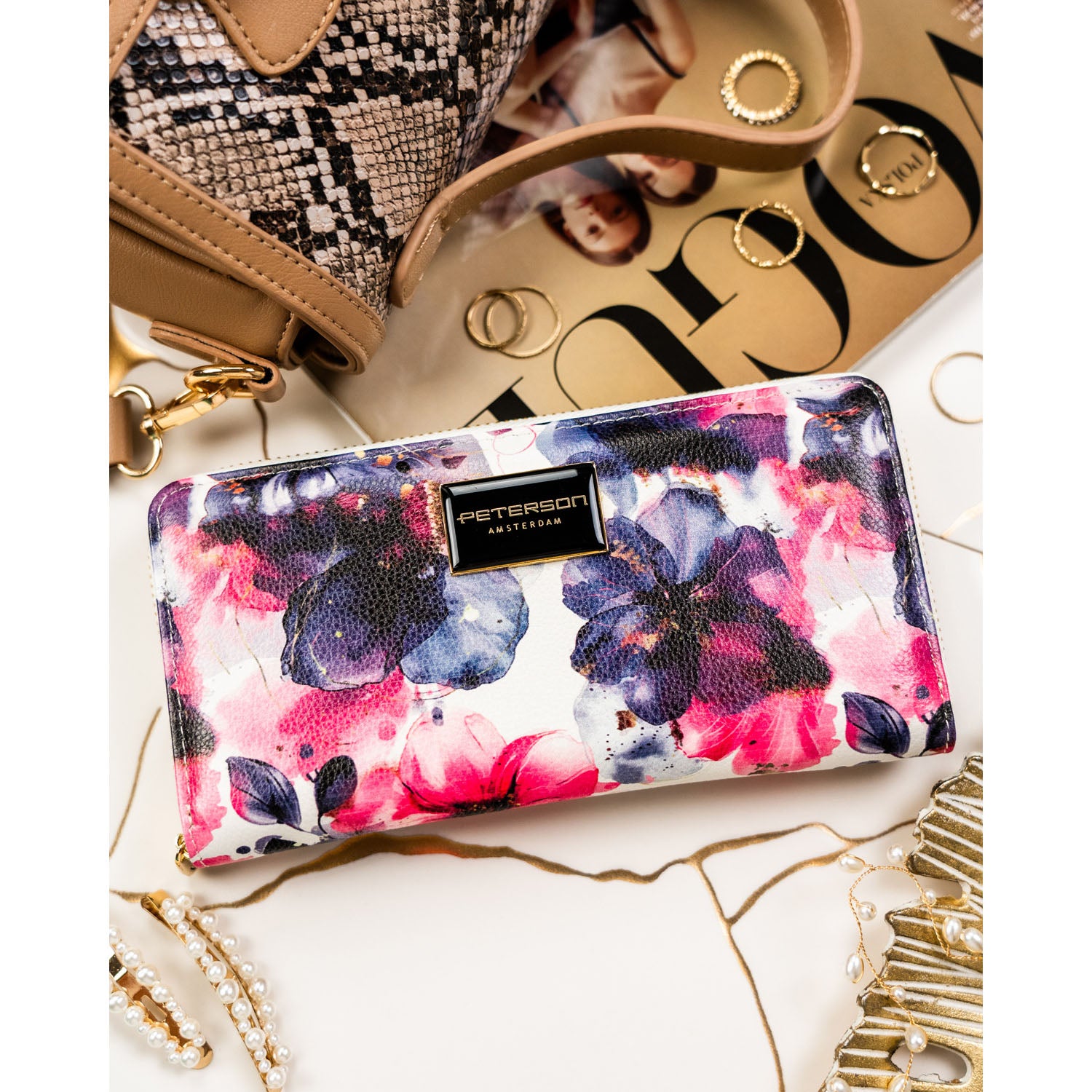 Vidutinė piniginė moterims Peterson, gėlėta PT76
