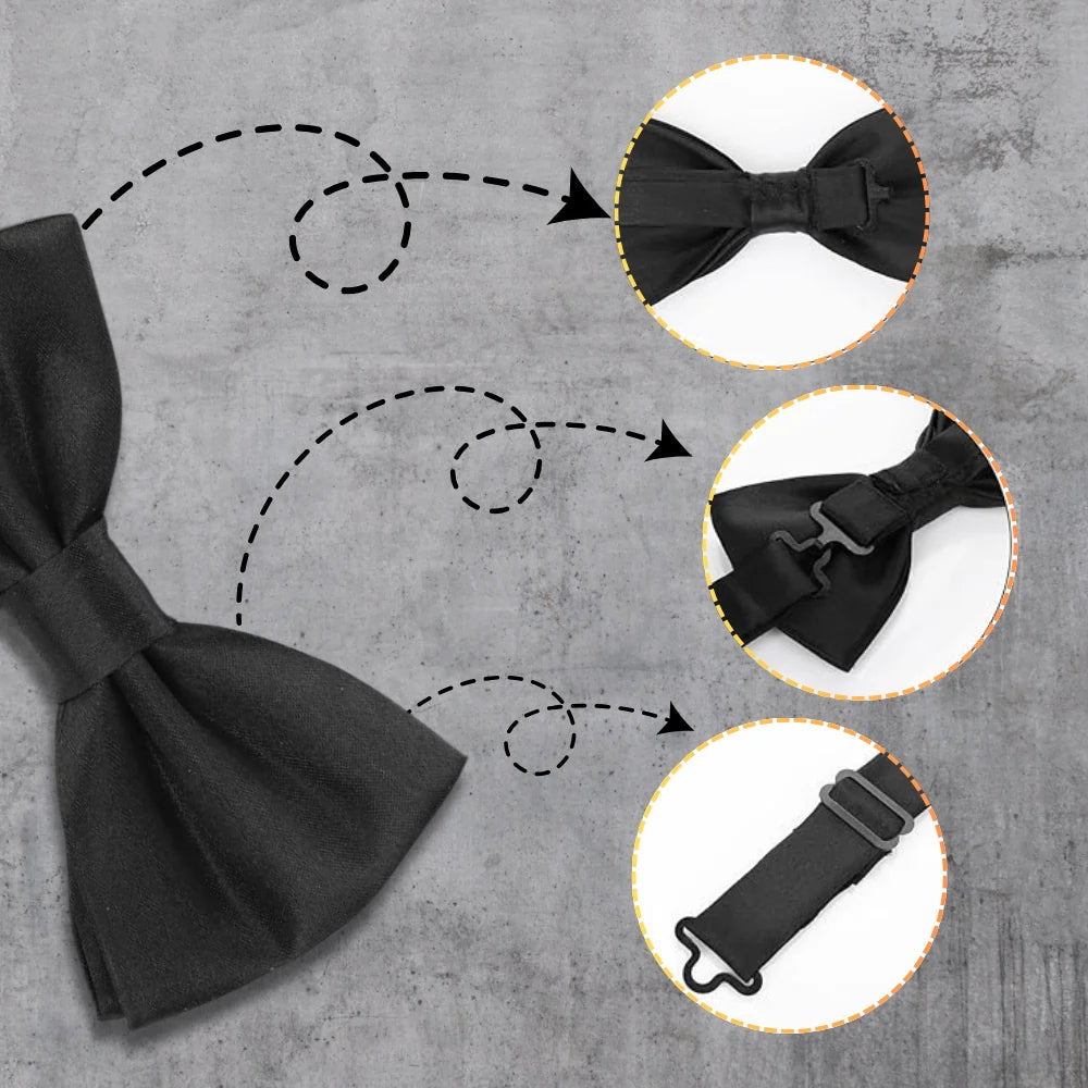 Klasikinė elegantiška vyriška peteliškė puikiai tinka bet kokiai progai. Reguliuojama: 11,4 cm, Plotis: 5,8 cm, Tinka kaklui: 20-42 cm. Spalva: Juoda, Medžiaga: poliesteris.