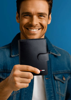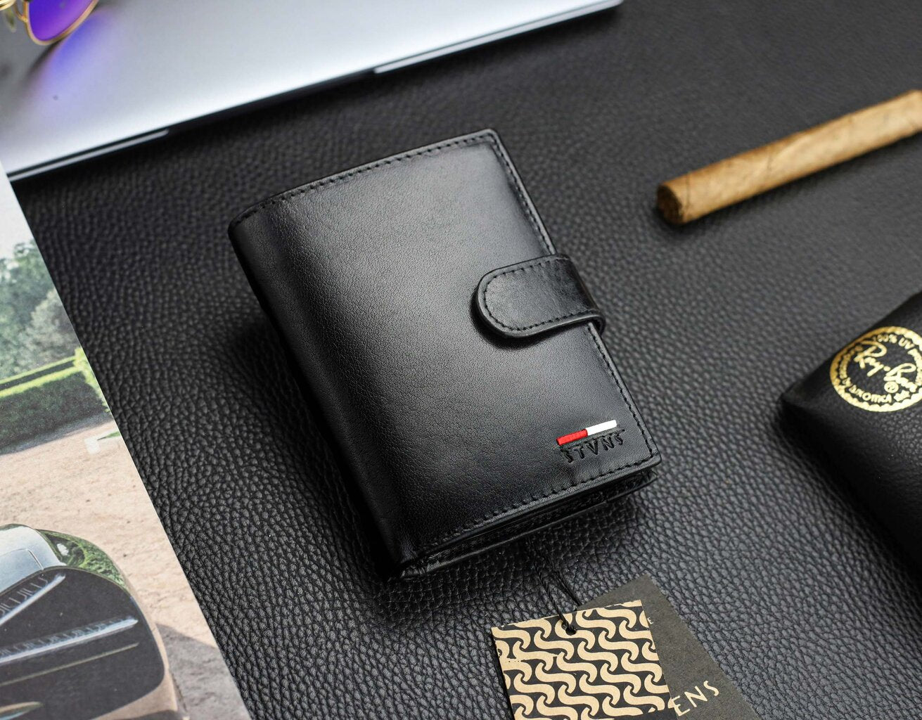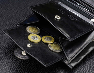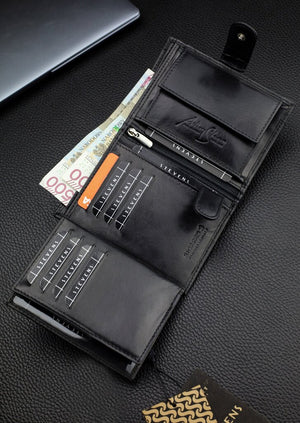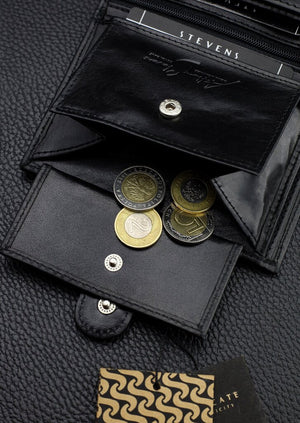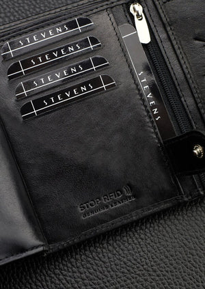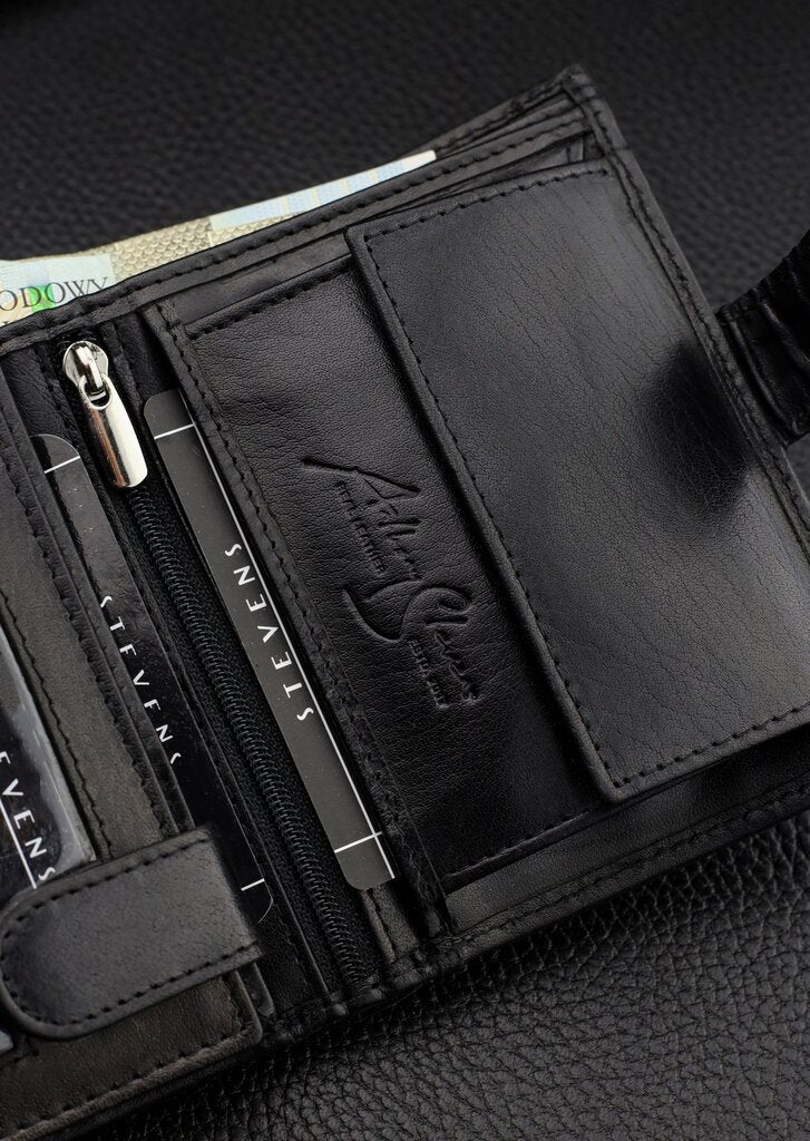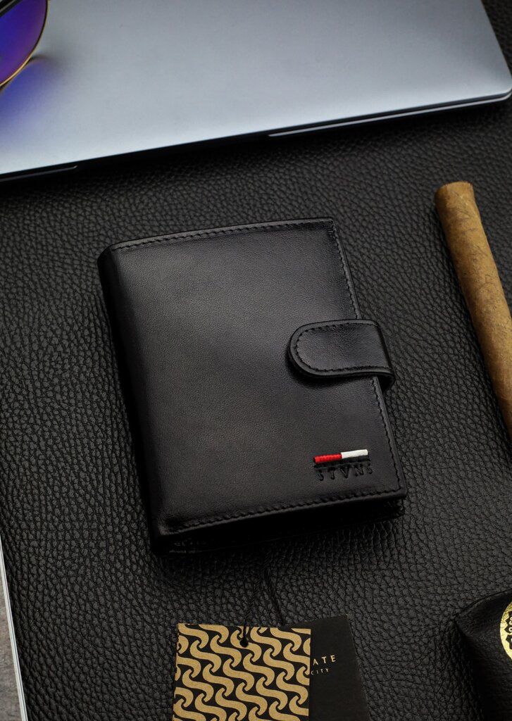 Vyriška piniginė STEVENS RFID, natūrali oda, vertikali, premium, juoda, Q1