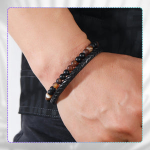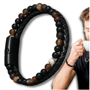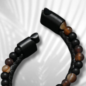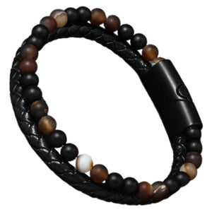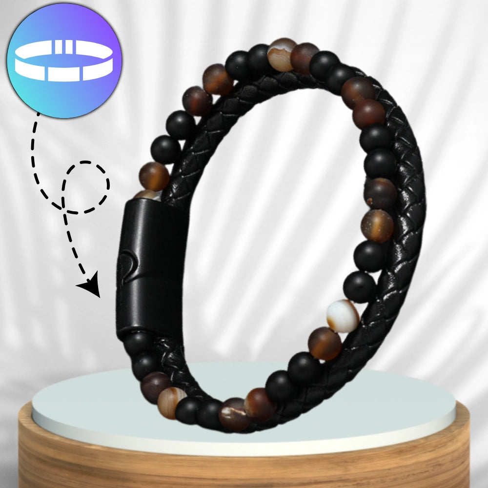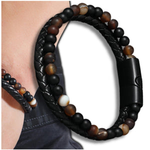 Vyriška apyrankė iš natūralios odos ir akmenų, su magnetiniu užsegimu.