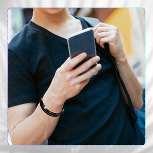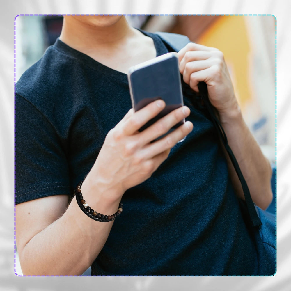 Vyriška odinė apyrankė su natūraliais akmenimis, magnetinis užsegimas